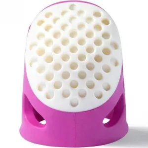 Designed in Germany this innovative ergonomic thimble is made for comfort incorporating breathing holes in the coloured, sturdy but soft and flexible rubber area so your finger does not sweat. The roundness of the front of this thimble supports the needle, it can sink into one of the little holes when being pushed into the fabric and will not slip off the thimble.