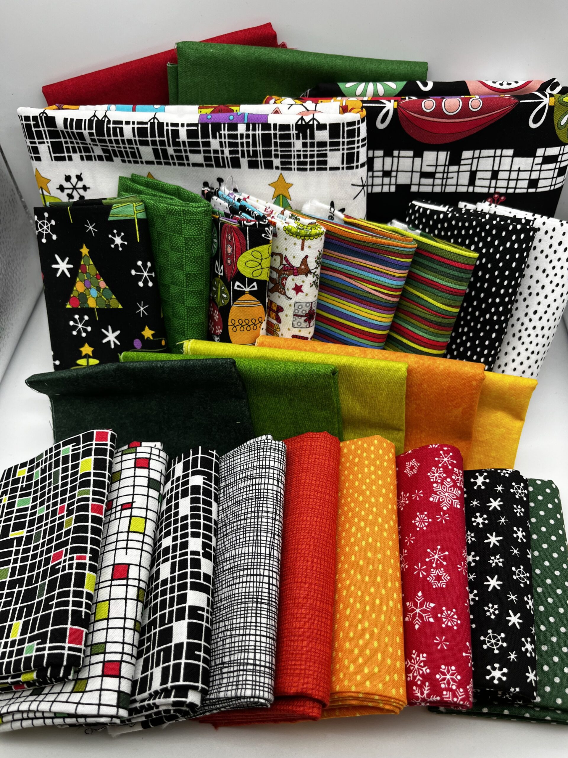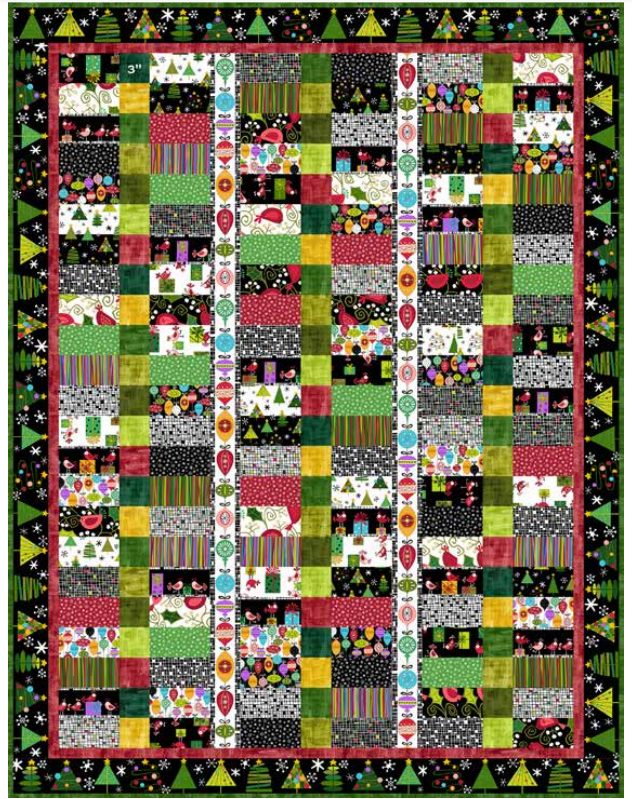 This kit includes all the fabrics you need, including binding fabric, to make this large Double/King size colourful Christmassy Quilt top. Designed by Kim Schaefer using the Holiday Tweets collection from Makower UK.